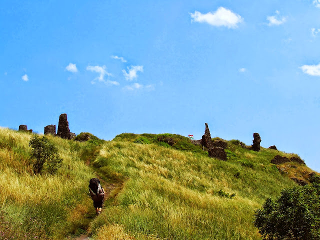 kaptató következik fel a várig. Ne szégyeljük kezünkkel megfogni a fákat,